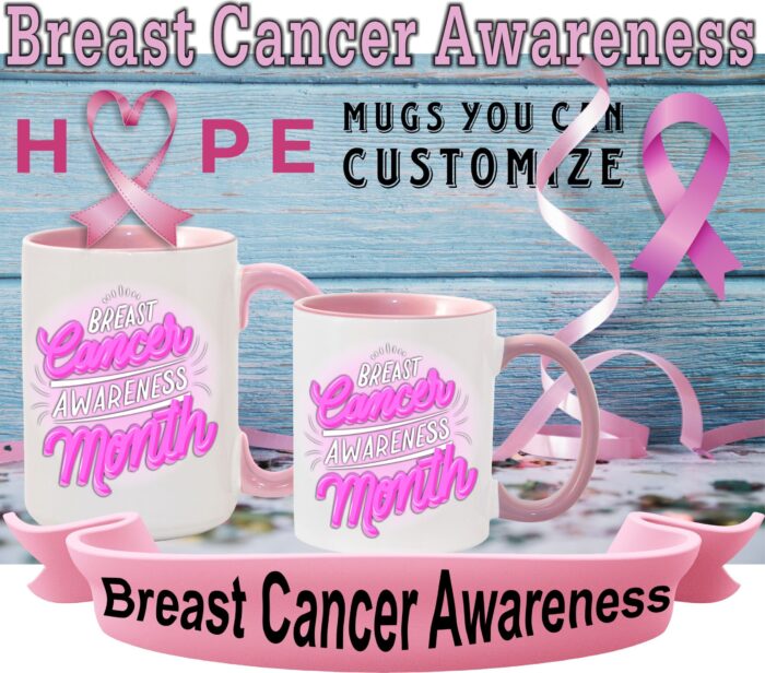 Show your support for Breast Cancer Awareness with this stunning mug. Featuring an eye-catching image and a vibrant pink trim. This custom-printed mug is the perfect way to raise awareness for a cause close to your heart. With its pink interior and handle, it’s both stylish and meaningful. And the best part? We’ll donate 10% to a support group. Join the fight and make a difference today.