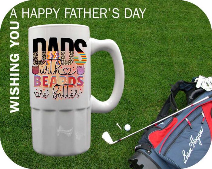 What sets these mugs and steins apart is the vibrant print that boldly proclaims, “Dads With Beards Are Better.” But here’s the cherry on top – you can also add a message written in a child’s hand! It’s as easy as having your little one jot down their heartfelt words on a piece of clean white paper, snapping a picture, and including it with your order.