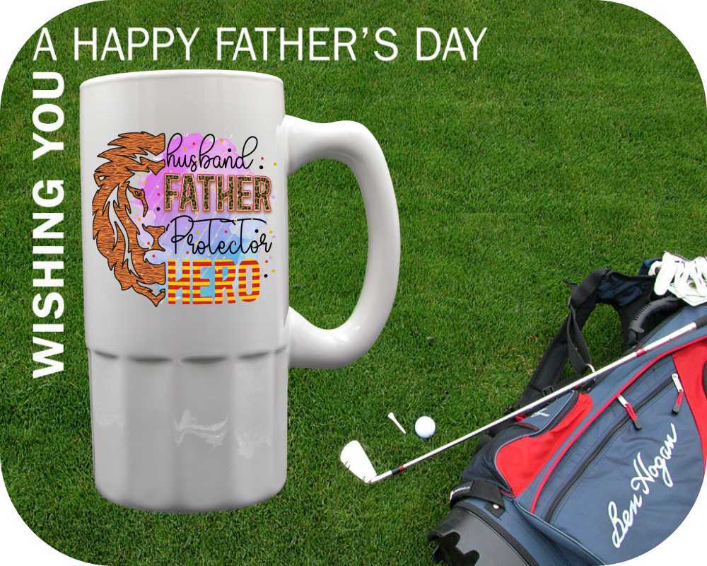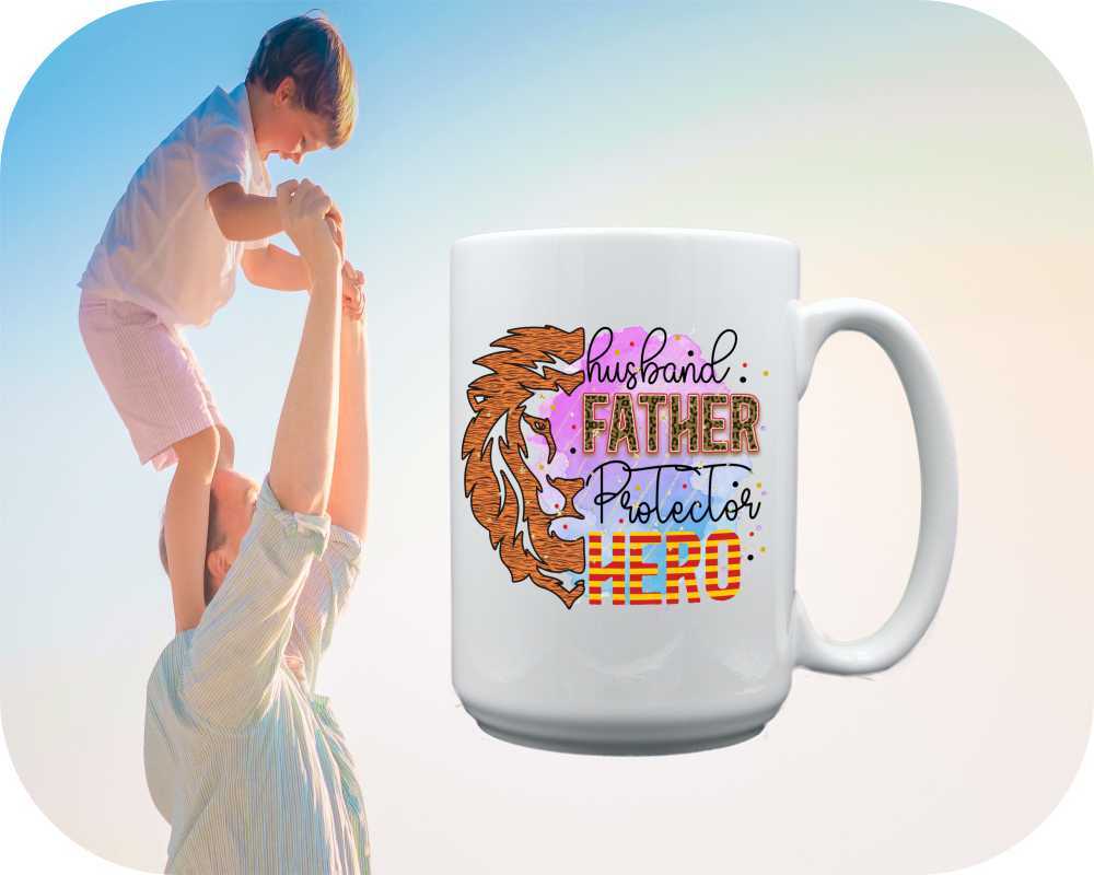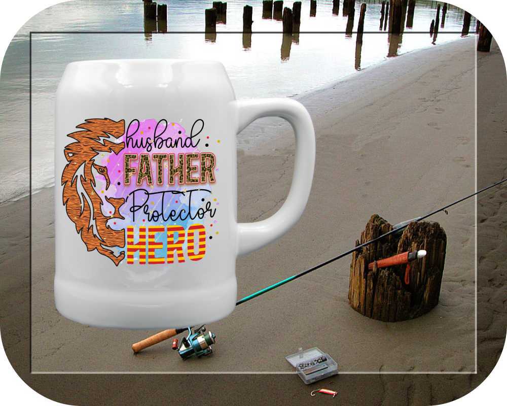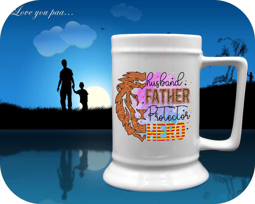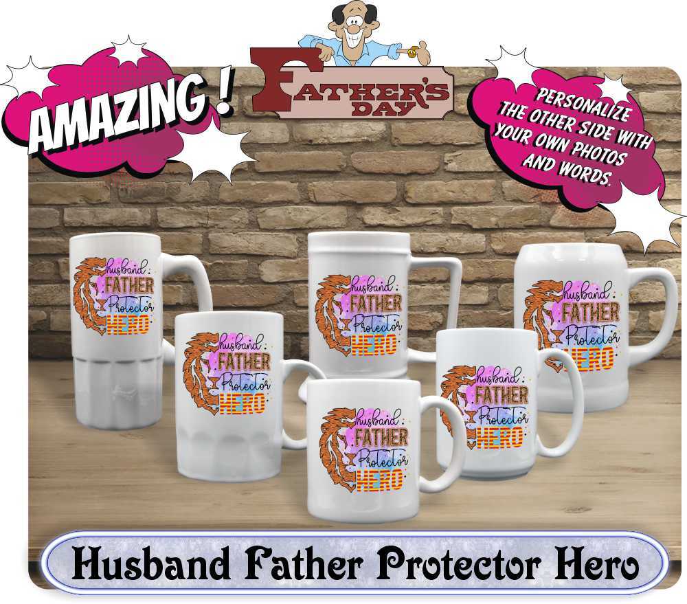 Celebrate the hero in your life with our personalized Husband Hero Mugs & Steins! These unique ceramic mugs and steins come in various sizes – from the perfect 11oz coffee cup to the impressive 22oz tankard. Each piece is adorned with the heartwarming message “Husband Father Protector Hero” printed in bright, bold letters. But here’s where it gets even more special – you can personalize these mugs and steins with your husband’s name, photos, or a sweet message.