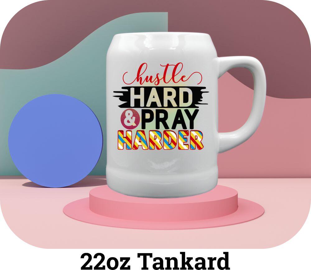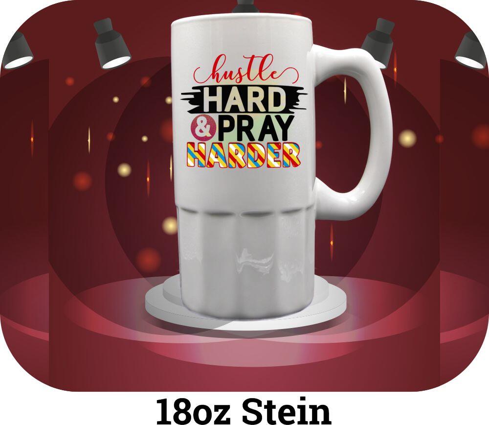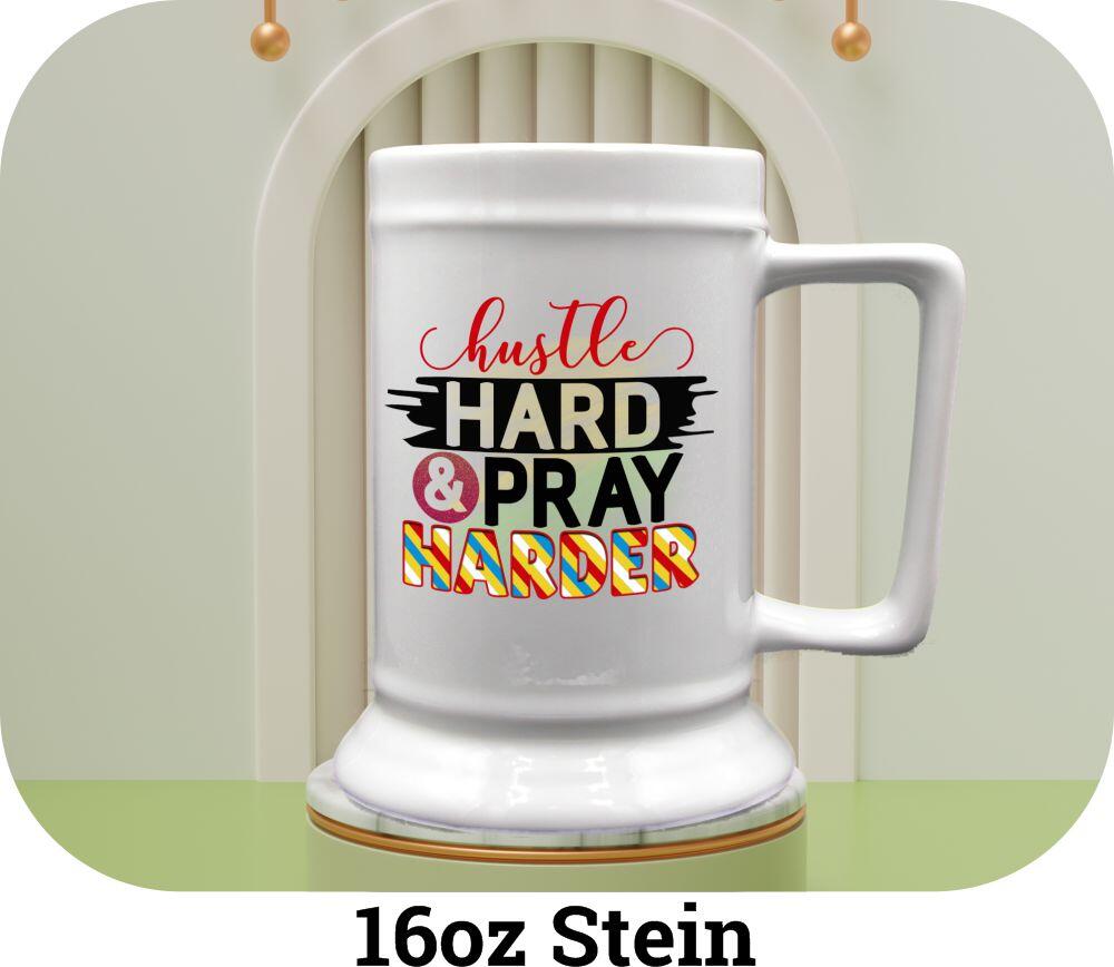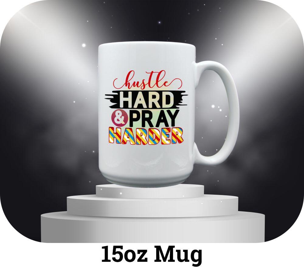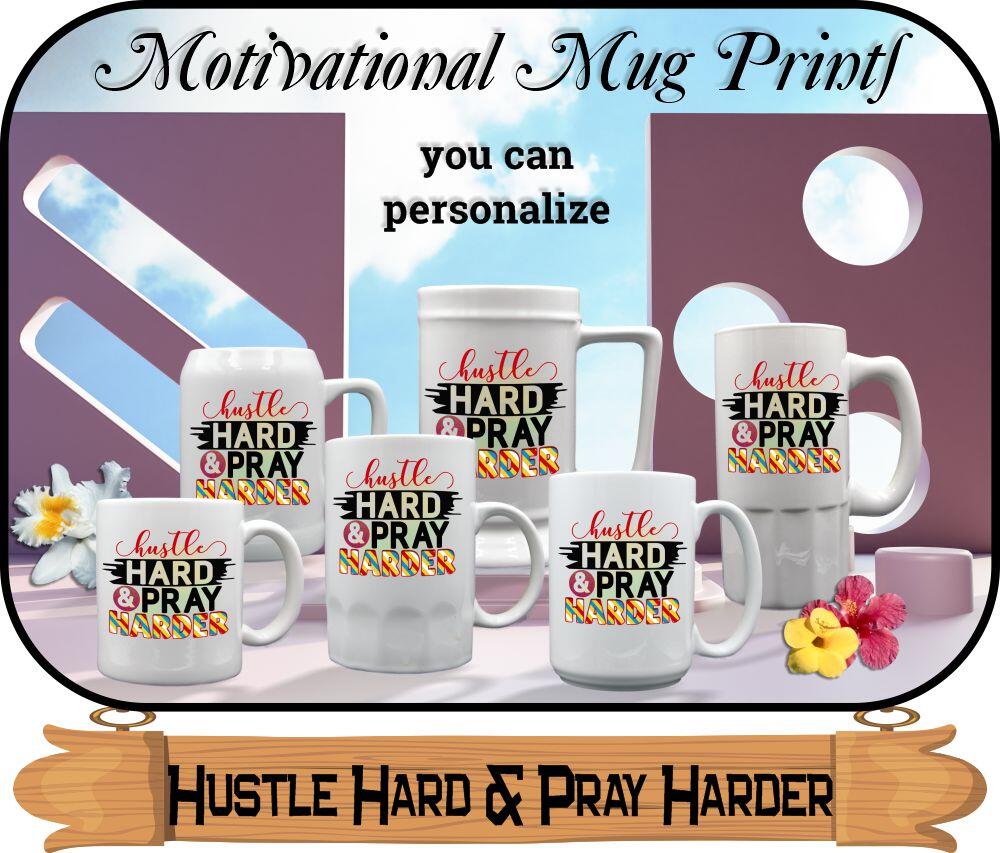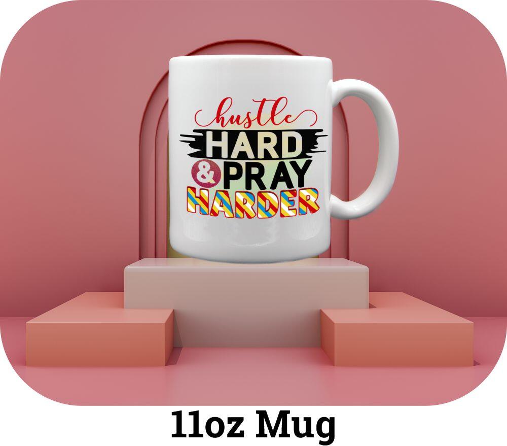 This quote “Hustle Hard & Pray Harder” says it all. You can even personalize your mug by adding your own photos and text.