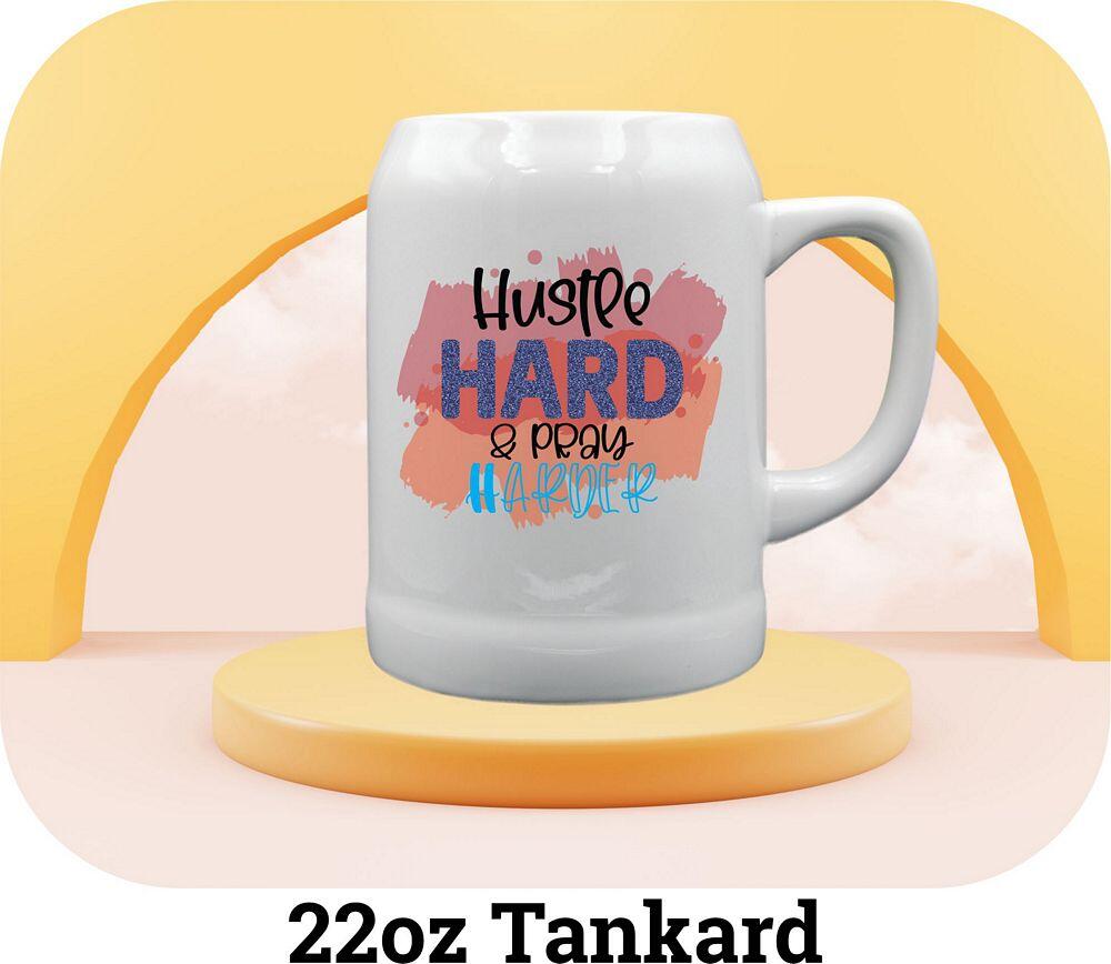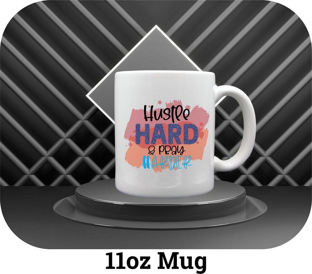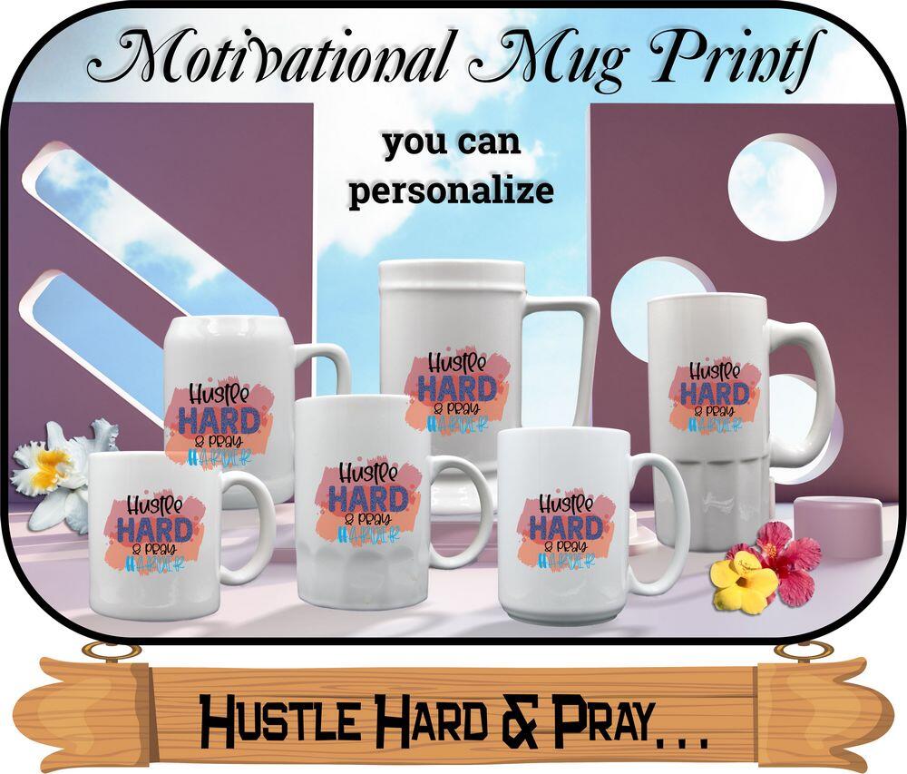 Fuel your day with our Motivational Mugs & Steins! Customize your 11oz or 15oz coffee cup, root beer mug, or beer stein with vibrant ‘Hustle Hard & Pray Harder’ prints. Want a personal touch? Simply send us your photos and messages for a unique twist. Follow our easy steps to add a handwritten note for that extra special touch. Get inspired with every sip!