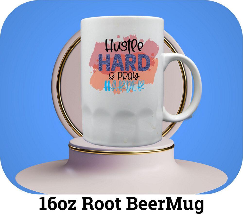 Get ready to kickstart your day with a dose of motivation with our exclusive Motivational Mugs & Steins! These ceramic mugs are not your ordinary coffee cups; they are vibrantly printed with the powerful message “Hustle Hard & Pray Harder.” Whether you prefer an 11oz coffee cup, a 15oz coffee mug, a root beer mug, or a classic beer stein, we’ve got you covered.