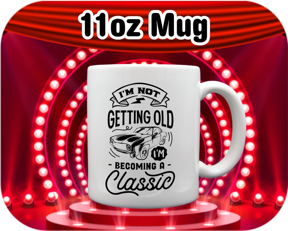 Looking for a unique gift for a friend or loved one? Our personalized “I’m Not Getting Old I’m Becoming Classic” mugs make for a thoughtful and humorous present. Show someone you care with a mug that is as special and one-of-a-kind as they are. Make every sip a memorable one with our funny coffee mugs.