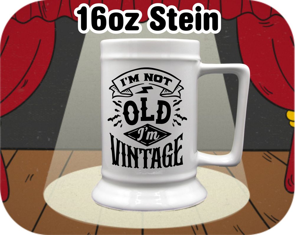 Embrace the charm of aging with our “I’m Not Old I’m Vintage” mugs and steins collection. Celebrate the wisdom and wit that come with age by enjoying your favorite beverage in these fun and quirky pieces. Perfect for seniors with a sense of humor, these mugs and steins feature amusing quotes that will bring a smile to your face every time you use them.