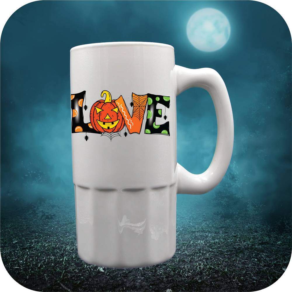 Unleash your Halloween spirit with our Love for Halloween Mugs & Steins. Add a personalized touch to your morning brew with these ceramic beauties. Printed with a bright and spooky “LOVE” design, these mugs are available in various sizes. You can even customize them with your own photos, names, or messages. Want to make it more special? Follow our easy steps to include a handwritten message. Let the Halloween fun begin!