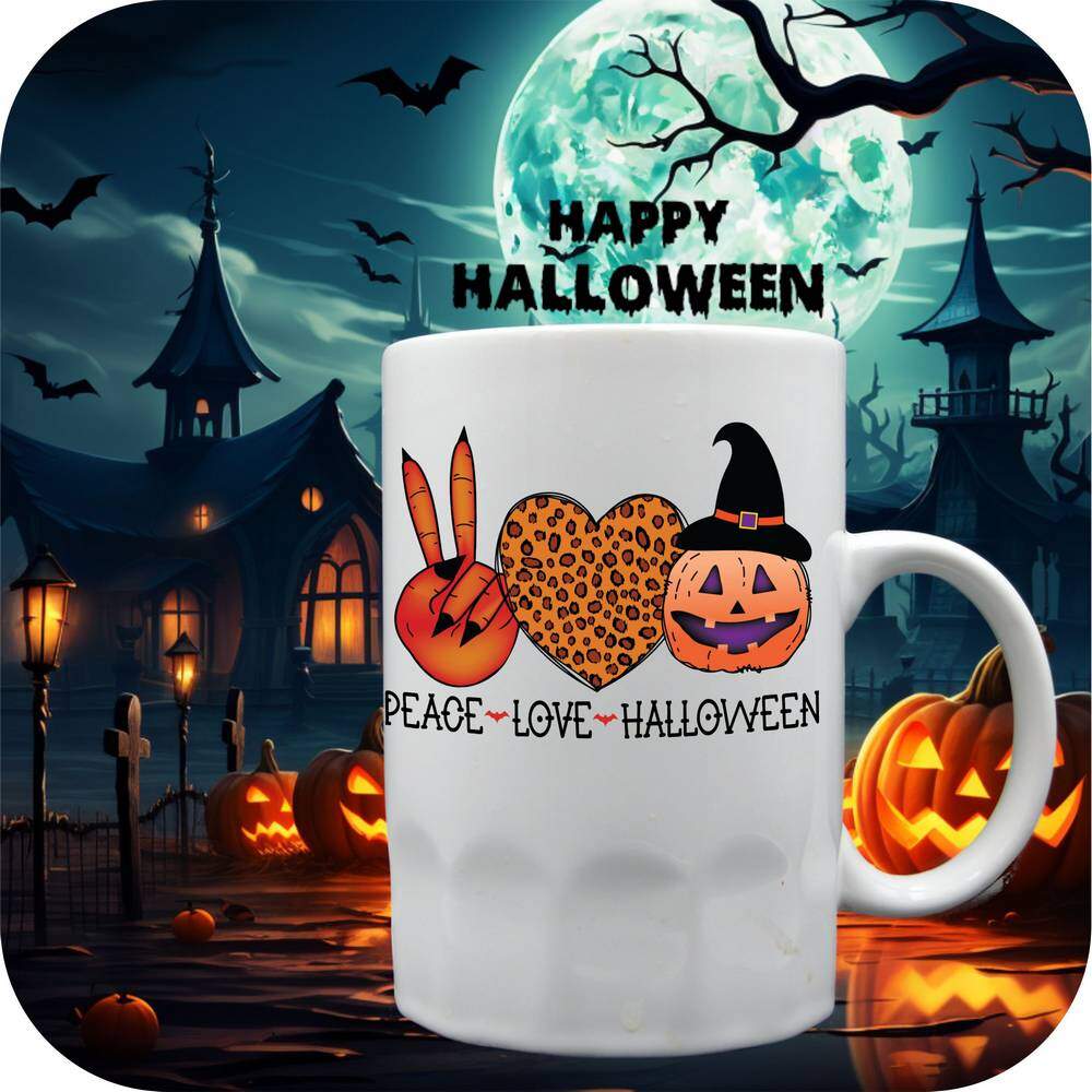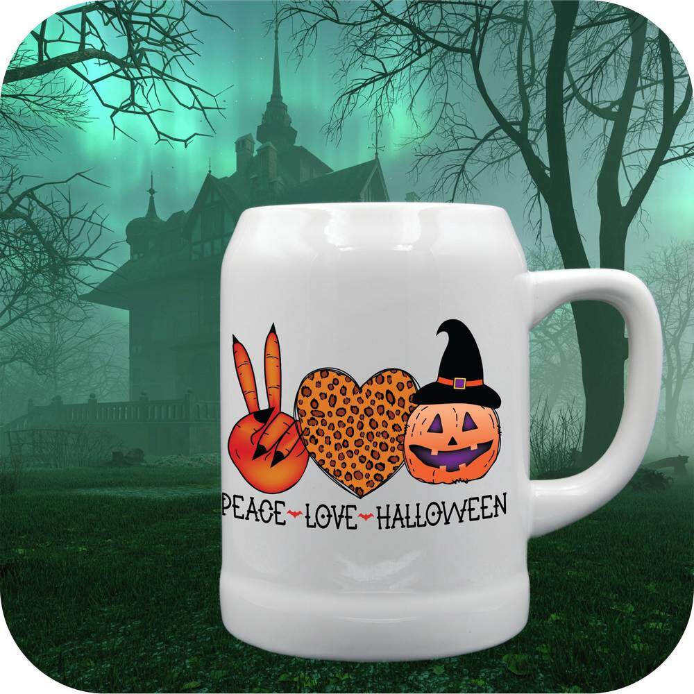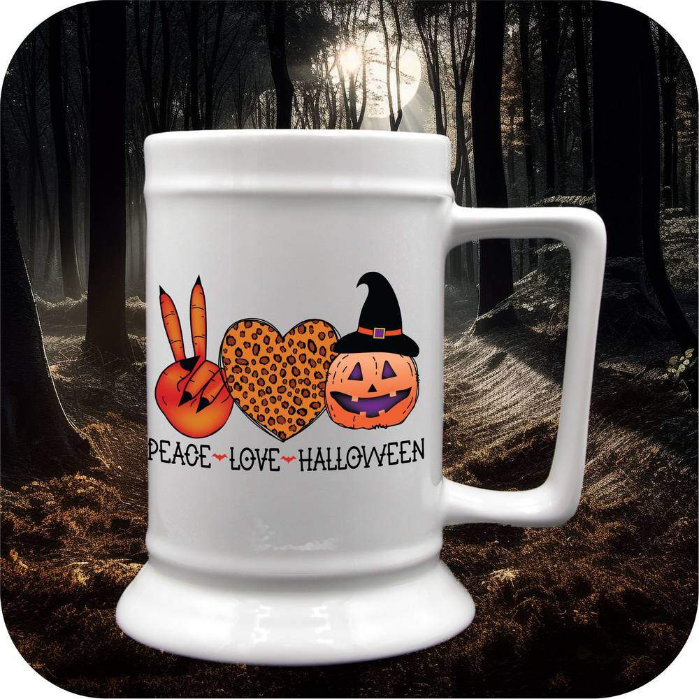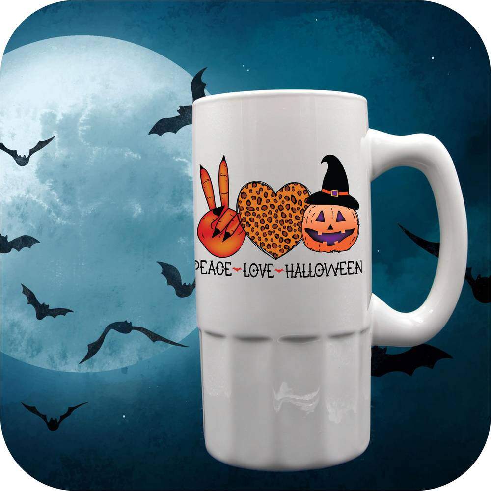 Get into the Halloween spirit with our exclusive Peace Love Mugs & Steins collection! These unique ceramic mugs and steins are the perfect way to add some festive fun to your morning coffee routine or evening drinks. Available in 11oz, 15oz, 18oz, and even 22oz sizes, there’s a perfect option for every beverage lover.
