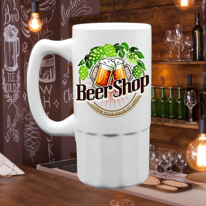 Let your own style ring in a toast from our custom-printed personalized beer mug. An 18oz beer mug crafted from ceramic of the finest quality and suited for perfect enjoyment of your favorite drink – an impulse even borne of attraction. To complete this versatile mug is an extra-large coffee mug for those with rough mornings requiring just a little extra kick.