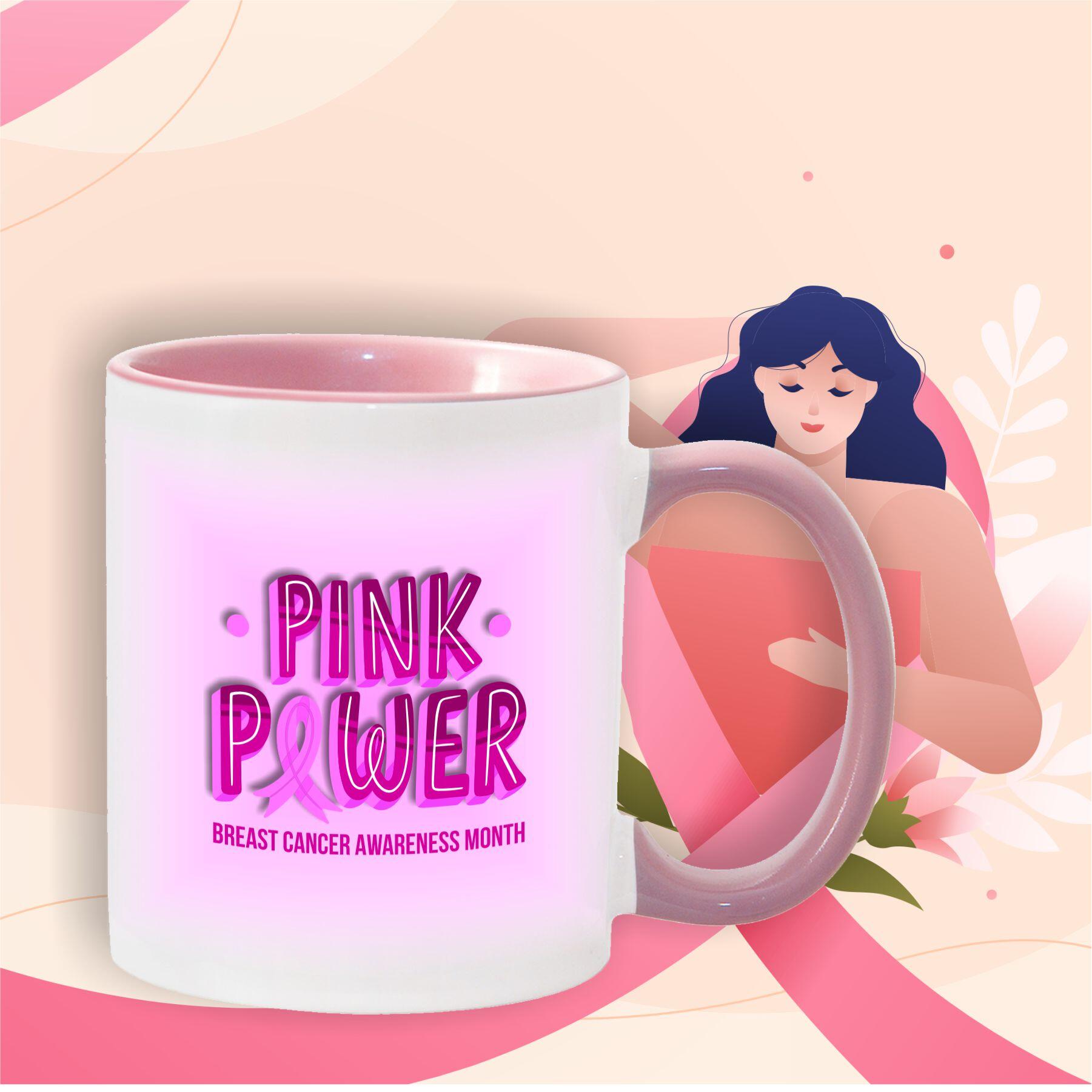 Introducing the Pink Power printed coffee mug, the perfect way to show your support for breast cancer awareness.