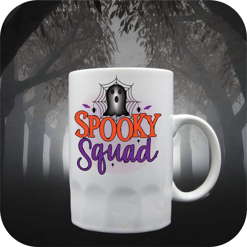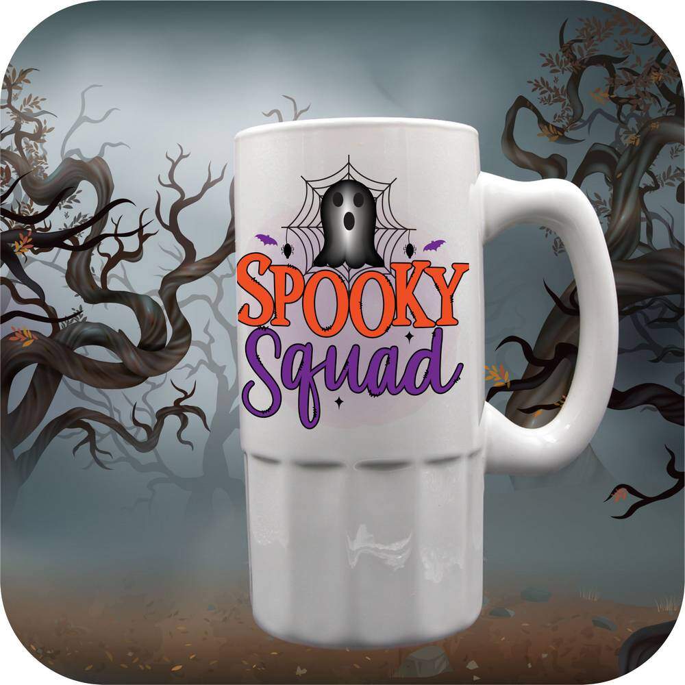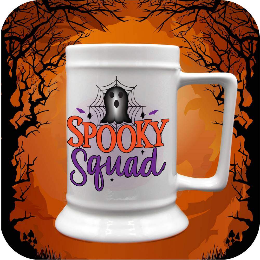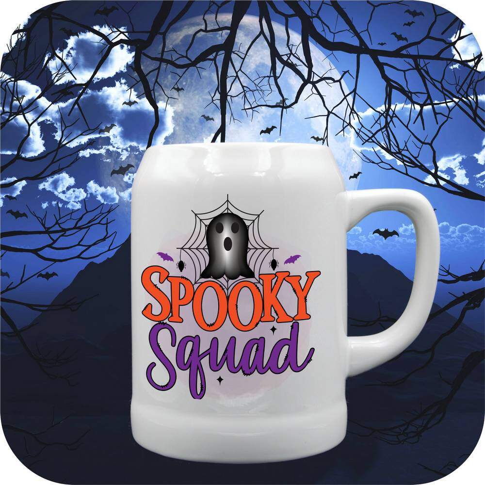 Get ready to join the Little Goblin Squad with these Spooky Squad Mugs & Steins! Add a touch of Halloween spirit to your morning coffee routine with our 11oz or 15oz ceramic coffee cups. Prefer something bigger? Opt for our 18oz beer stein or 22oz tankard for your favorite beverages.