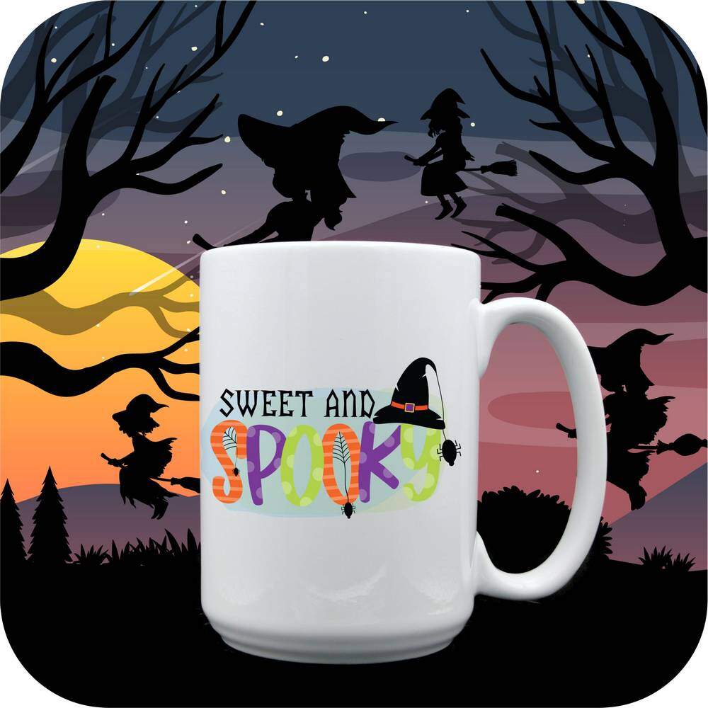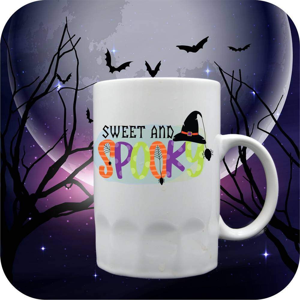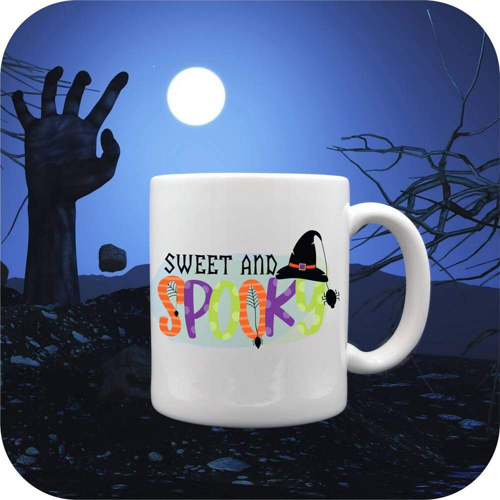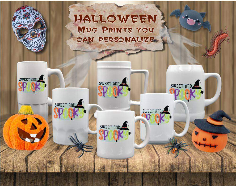 What sets these mugs apart is the option to personalize them with your own photos, names, or messages, making them a fantastic gift for yourself or a loved one. Each mug is printed brightly with the words “Sweet and Spooky”, capturing the essence of Halloween in a whimsical and playful design. Bring a touch of the Halloween spirit into your home or office with these fun mugs that are both functional and festive.