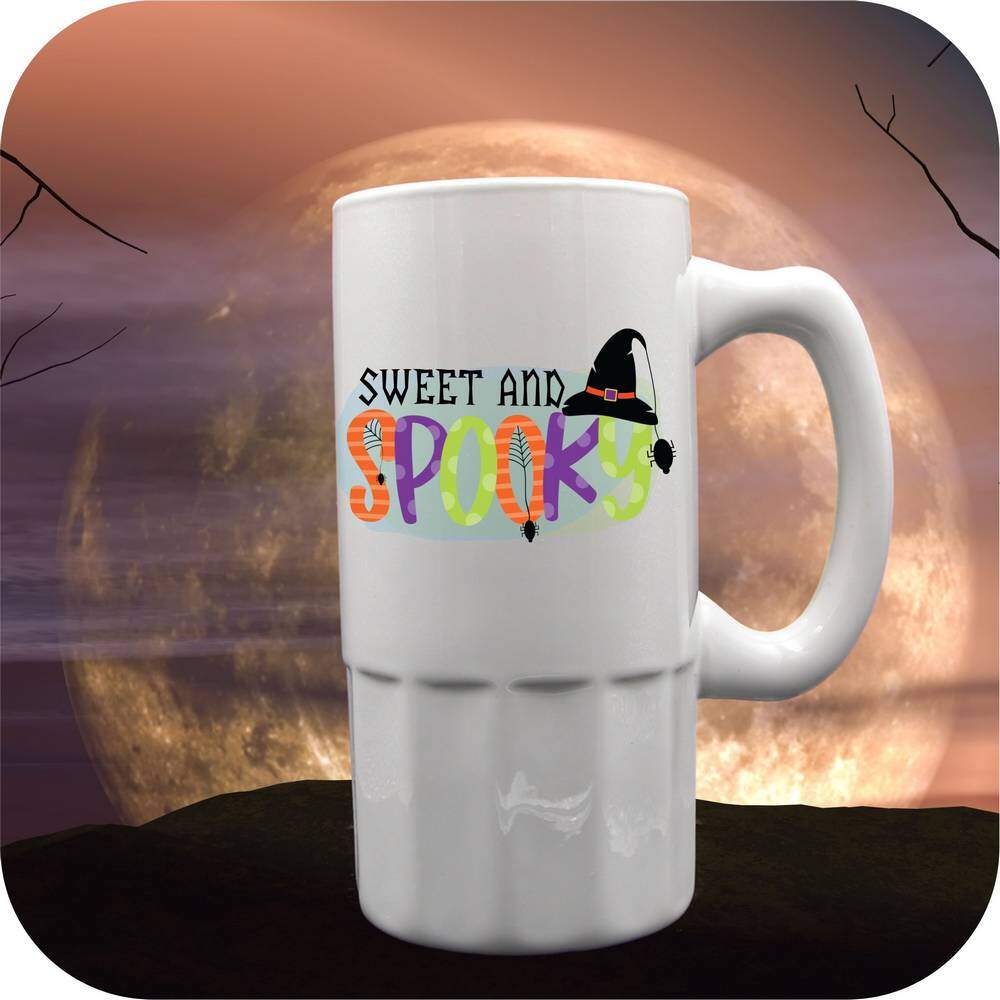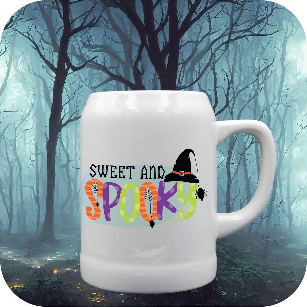 Embrace the spooky season with our Sweet Halloween Mugs & Steins! 🎃 Personalize them with your photos, names, or messages for a touch of magic. From the 11oz coffee cup to the 22oz tankard, these ceramic beauties are printed bright with “Sweet and Spooky”. Perfect for gifting or sipping your favorite brew in style. Make your Halloween extra fun and personal with these unique mugs! 🦇🍬