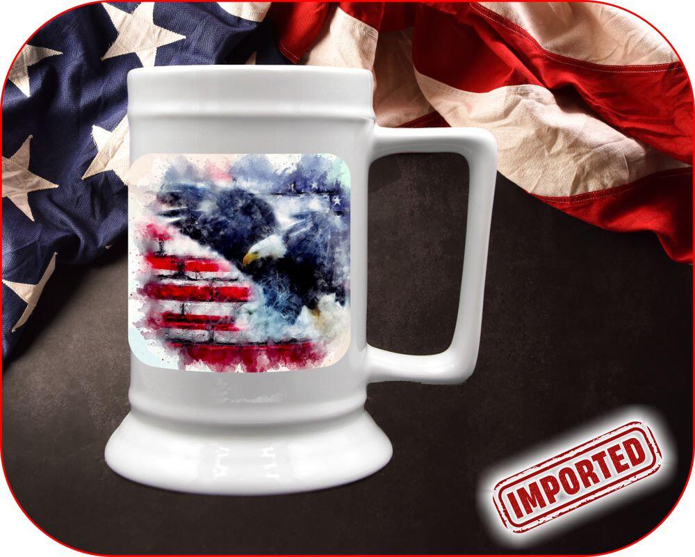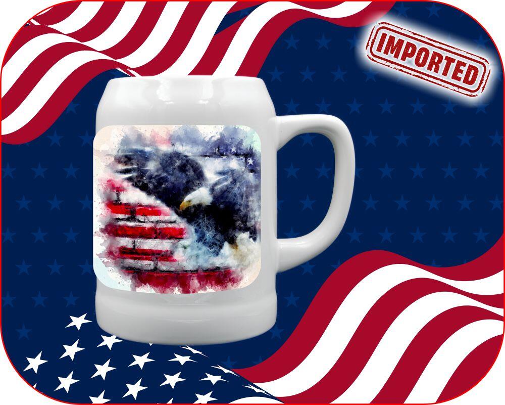 We offer this print on several mugs/steins that have been imported. If you are looking to keep this a truly 100% patriotic print, please be sure to select one or our two 100% Made in USA mugs which are proudly manufactured by HF Coors in Arizona, USA.
