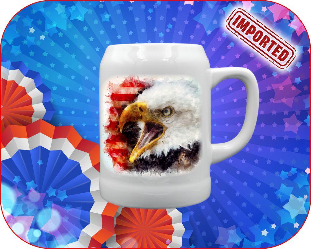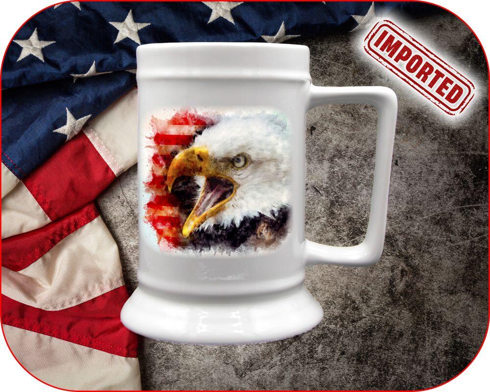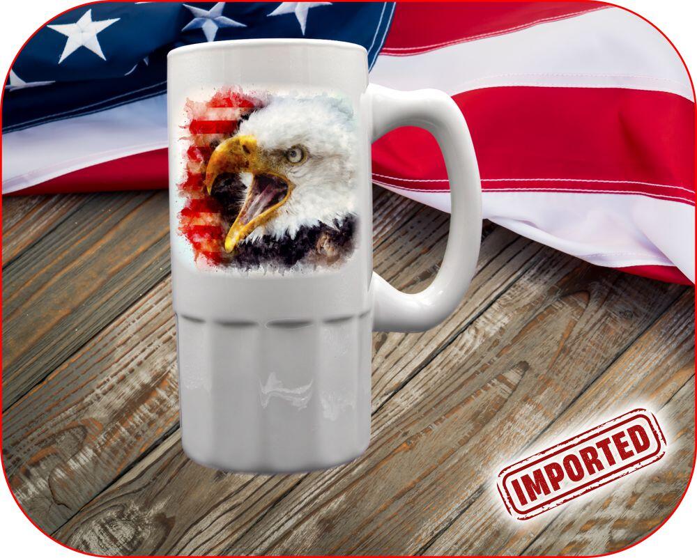 Show your American pride with our Patriotic Watercolor Eagle Mug & Stein collection! Choose from various sizes to personalize your ceramic mug or beer stein with photos, names, or messages. The soft watercolor American flag background highlights the open bill bald eagle, symbolizing strength and grace. Opt for our 100% Made in USA mugs by HF Coors for the ultimate patriotic touch. Join us in supporting small businesses and keeping the spirit of freedom alive!