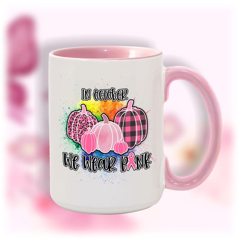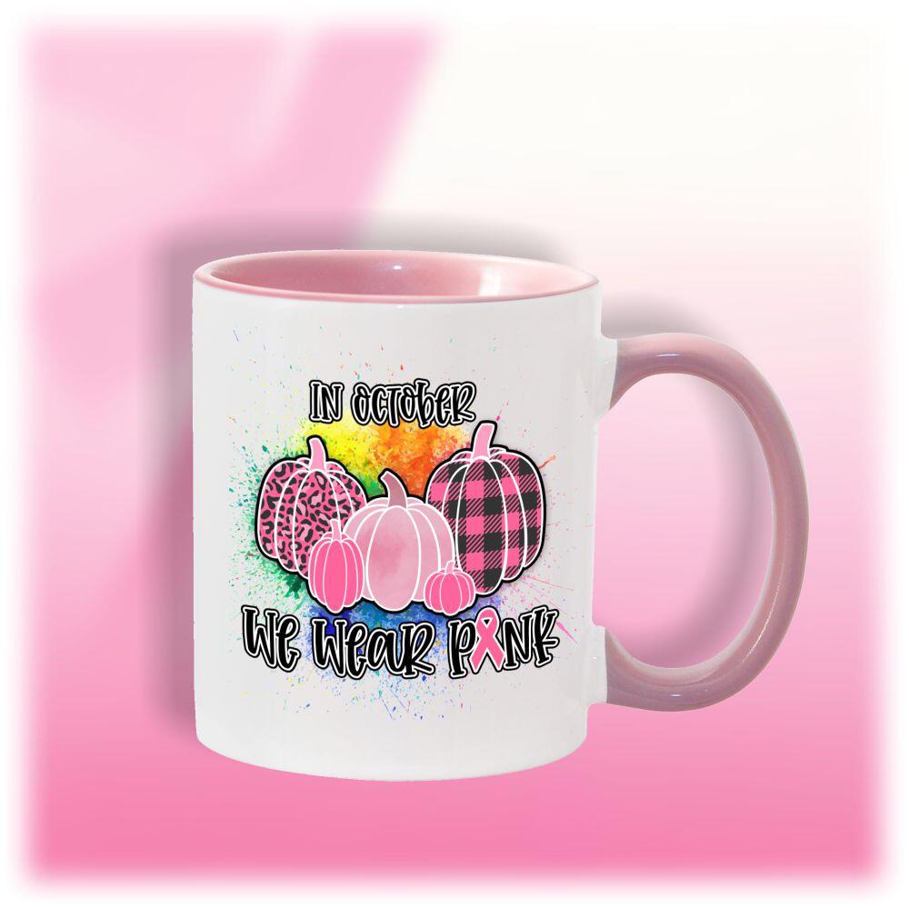 Show your support for Breast Cancer Awareness with our “In October We Wear Pink” personalized coffee mug. Add your own photo and message to make it extra special. Our pink mug comes in two sizes – 11oz and 15oz. Plus, 10% of the proceeds are donated to breast cancer research and support. Join the cause and sip your morning coffee in style!