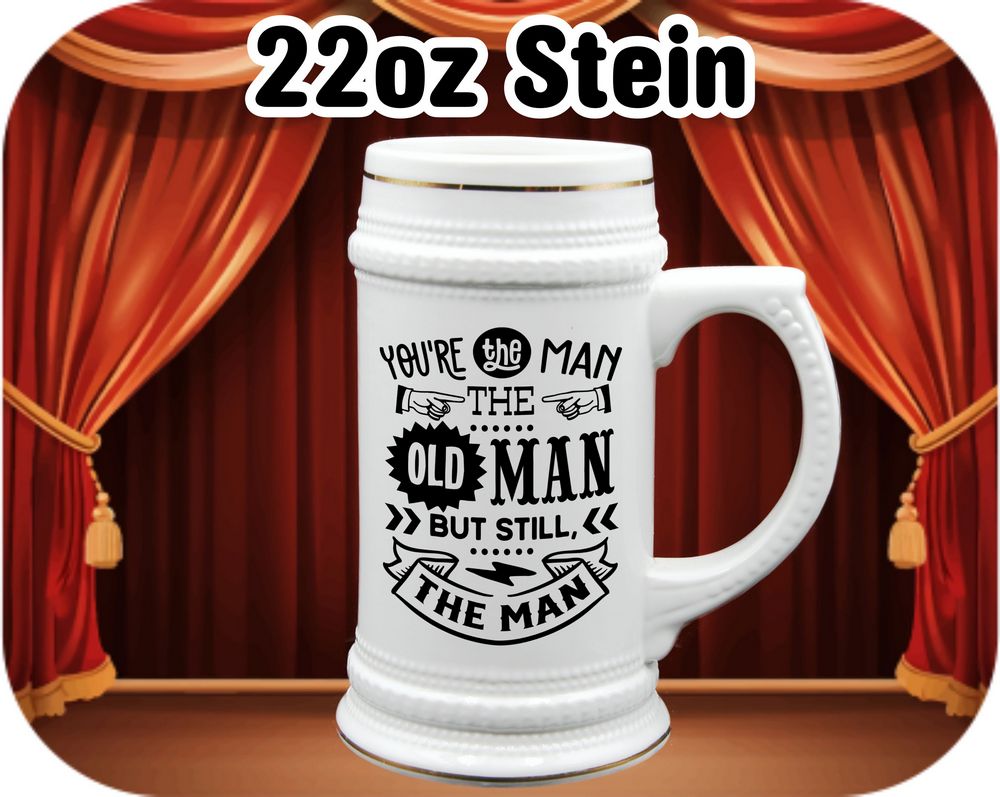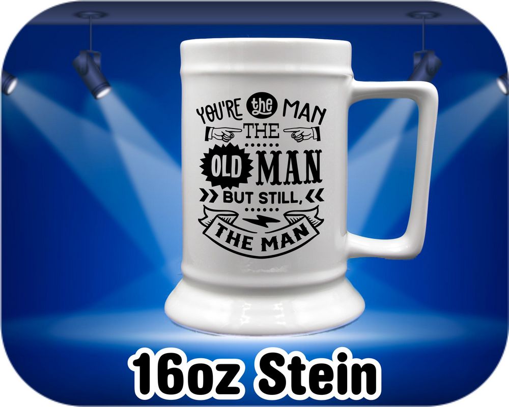 Youre The Man The Old Feeling like the ultimate man? Indulge in your daily dose of confidence with our personalized Mugs & Steins! Crafted in ceramic, these 11oz and 15oz coffee cups are perfect for your morning brew, while the root beer mug and beer stein elevate your drinking experience. Each piece is emblazoned with the empowering message: “You’re the man, the old man, but still the man.”